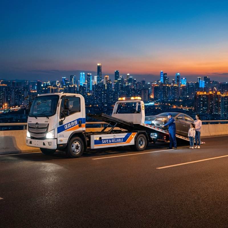 晚高峰期间,一辆SUV在西安南二环路口突发变速箱故障无法移动。救援队迅速协调交警疏导交通,并安排平板拖车将车辆运往4S店。